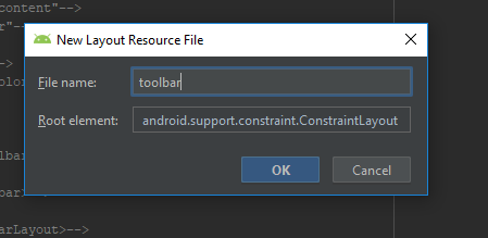 In the toolbar we will create a TextView that will hold the toolbar title later on. The xml code for the toolbar will look like this: